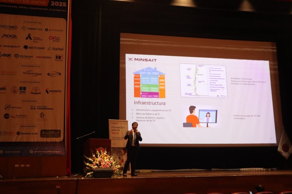 El gerente de Sanidad para Minsait en Chile, Erick Cortez, lideró la charla, titulada “Transformación Digital en Salud: Historia Clínica Electrónica Unificada en el país, su relevancia en la calidad, eficiencia y seguridad de los servicios de salud”, en donde compartió los avances de la compañía en materia de interoperabilidad sanitaria, digitalización de la gestión clínica y diseño de soluciones flexibles que garantizan la continuidad asistencial.